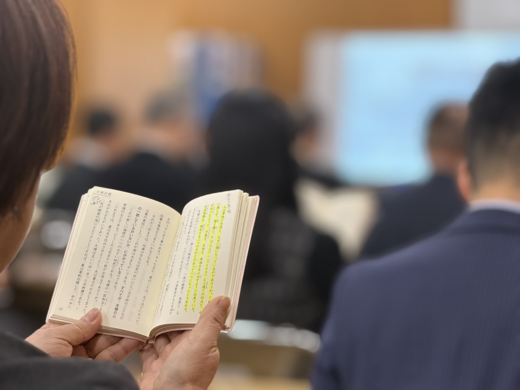 モーニングセミナーでは、万人幸福の栞17ヶ条の斉唱や栞輪読を通じて、日々の経営に活かせる実践的な学びを得ることができます。特に「明朗・愛和・喜働」の三実践は、経営者としての心の在り方を見つめ直すきっかけとなるかもしれません。