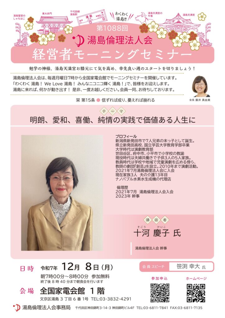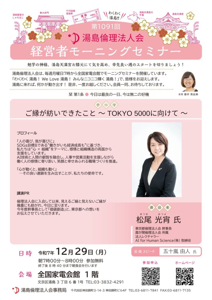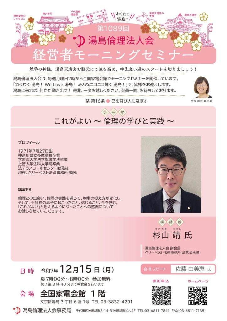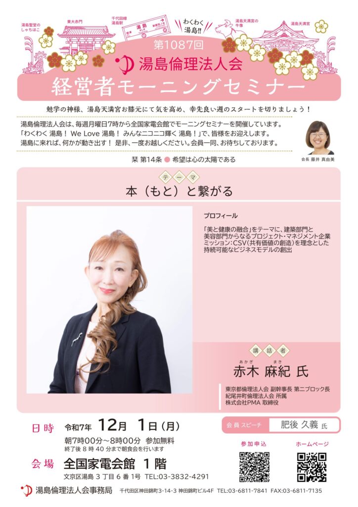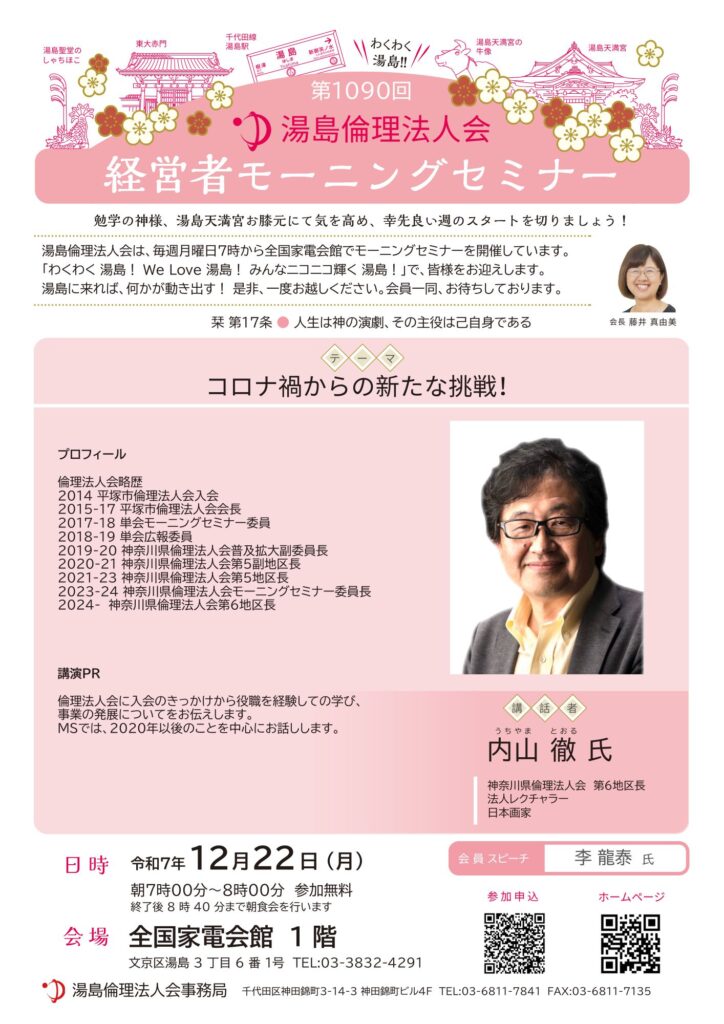 湯島倫理法人会のモーニングセミナー開催スケジュールです。