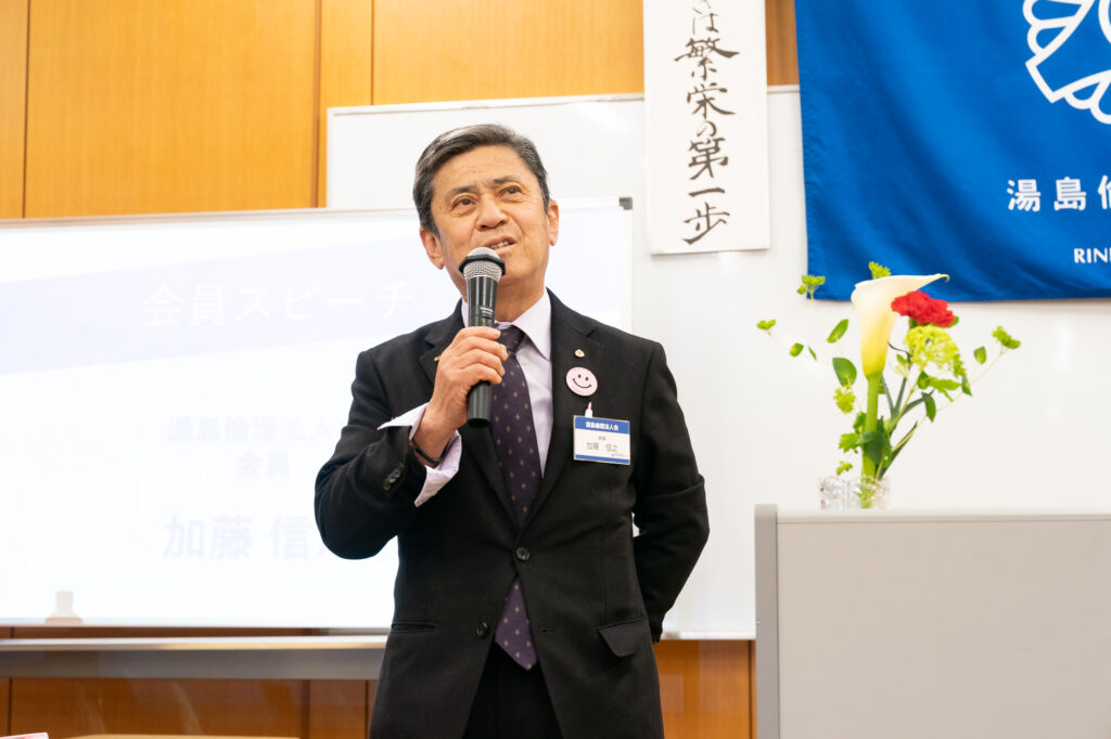 湯島倫理法人会に転籍してからは、さらに学びが深まりました。朝礼やモーニングセミナーで役割を担う中で、「準備不足だったんじゃないか」「もっと姿勢をシャキッと」「声が低いよ、高いよ」と、必ず誰かが声をかけてくれるのです。